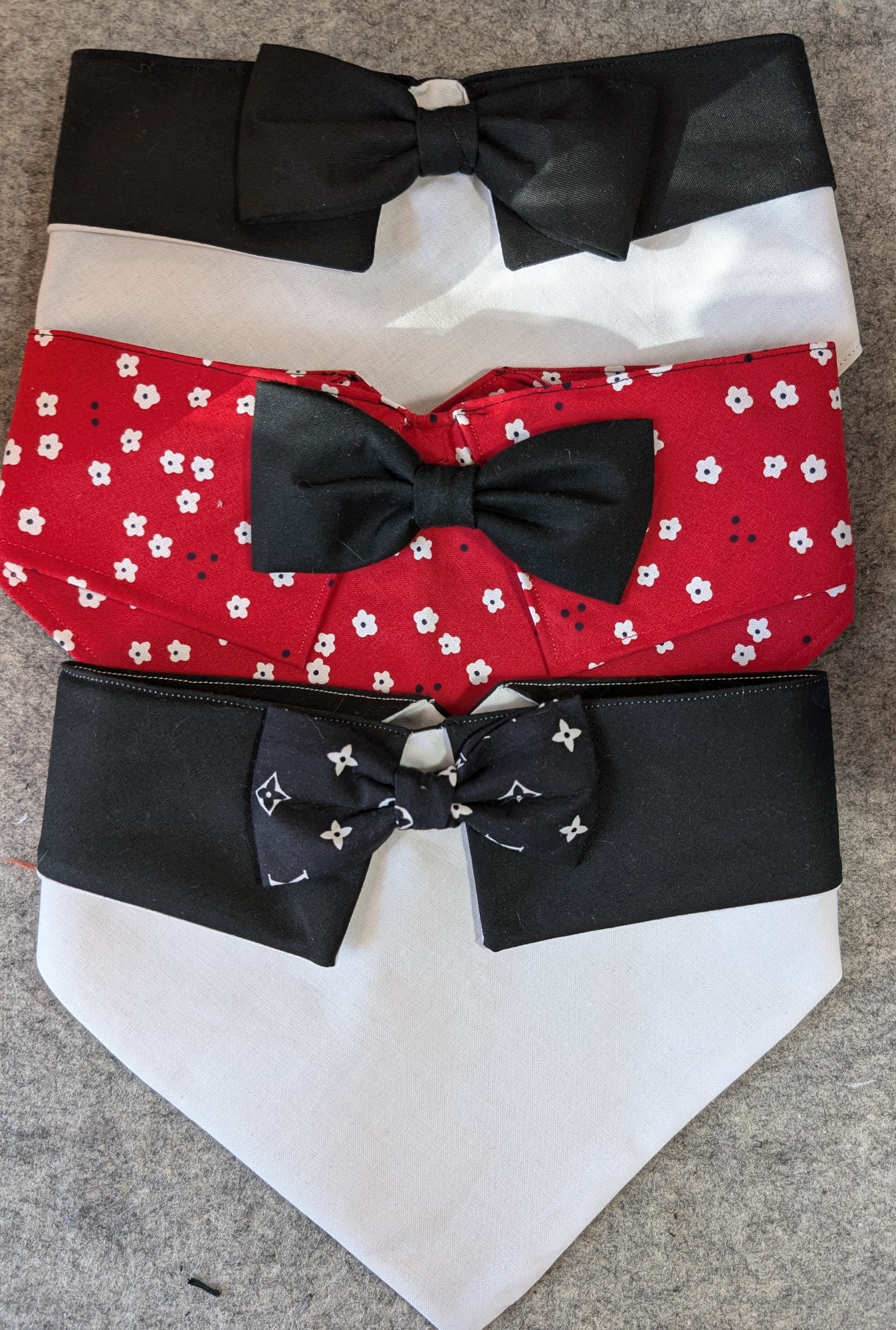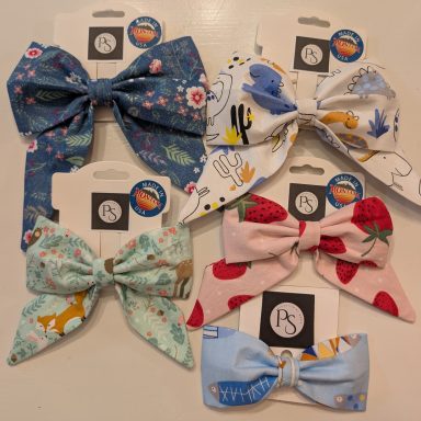 All our handmade accessories are made with love. Our fabric is locally sourced and high quality. From trendy bandanas to playful bow ties, our designs are sure to turn heads at the dog park.